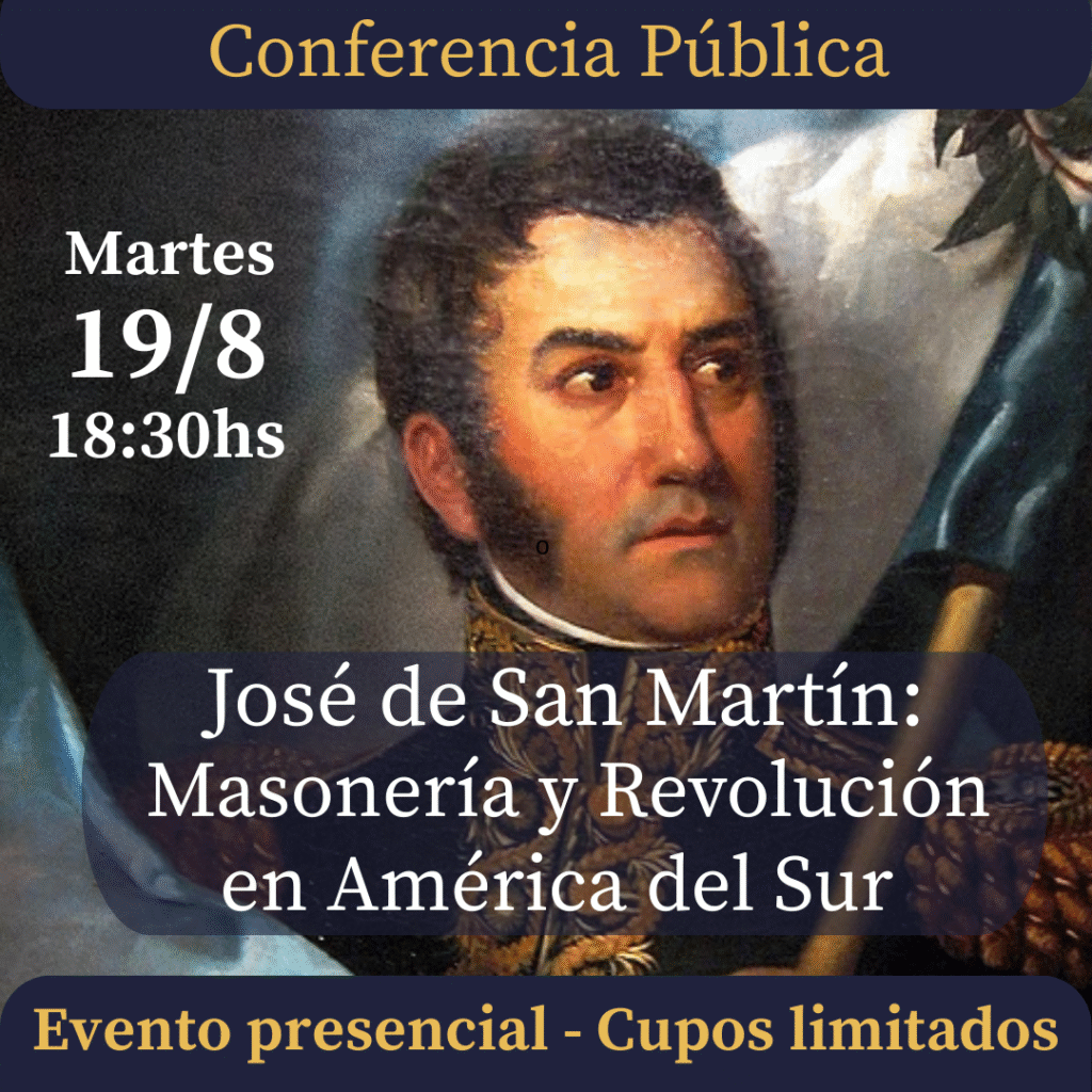 En el marco de un nuevo aniversario del paso a la inmortalidad del Libertador, la Academia de Altos Estudios Filosóficos y Simbólicos invita a la conferencia pública “José de San Martín: Masonería y Revolución en América del Sur”, un encuentro que propone explorar la dimensión menos conocida del prócer: su condición de Masón y la influencia de los ideales masónicos en la gesta independentista sudamericana. A través de un análisis histórico y simbólico, se abordará cómo la fraternidad, la libertad y la igualdad —principios rectores de la Masonería— se entrelazaron con la visión estratégica y política de San Martín, contribuyendo a la concreción de un proyecto emancipador continental. Un evento presencial con cupos limitados que permitirá a los asistentes adentrarse en el legado filosófico y simbólico que inspiró una de las páginas más trascendentes de nuestra historia.